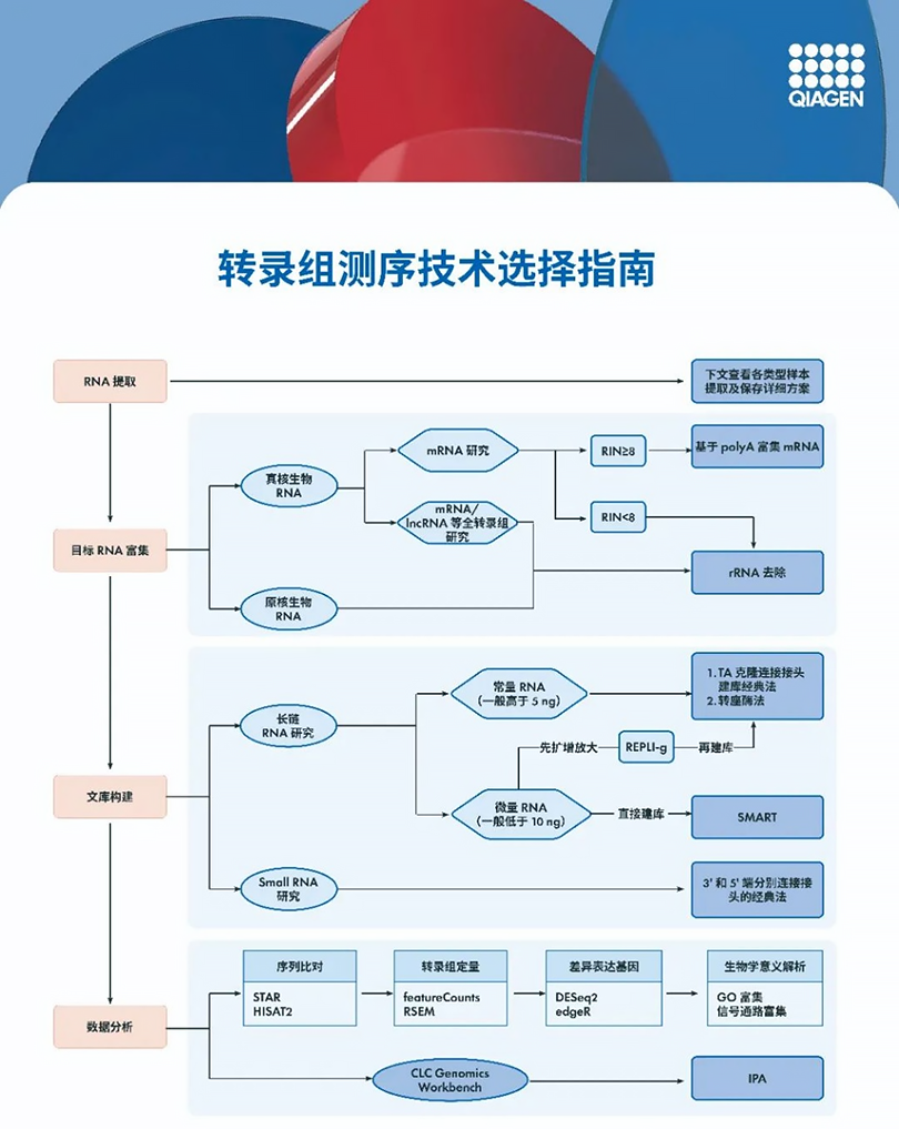 除此此外,QIAGEN还可提供全面的转录组研究方案。无论您是研究miRNA等小RNA还是研究lncRNA、cirRNA等长片段RNA,无论您是采用qPCR、数字PCR还是NGS,QIAGEN均可提供完善的产品组合,从前端实验到后期数据分析,全方位满足您的研究需求。