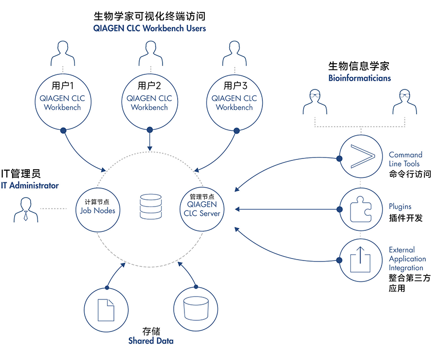 越来越多转化医学中心和中心实验室开始搭建高性能计算平台(HPC),部署NGS数据分析系统,为研究者提供数据分析保障。然而, 基于Linux命令行的海量分析工具,对管理人员和使用者提出了巨大挑战。如何简化NGS数据分析软件的部署、管理和使用?CLC Genomics Server为您提供完整解决方案。
