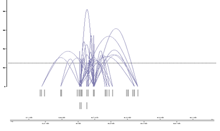 ( 横坐标表示基因组位置,纵坐标表示连接系数)