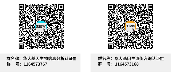 注:《基因组咨询师-遗传咨询初级》、《生物信息分析员认证》考试每年四次,每季度一次。(最近一次12月底组织考试)