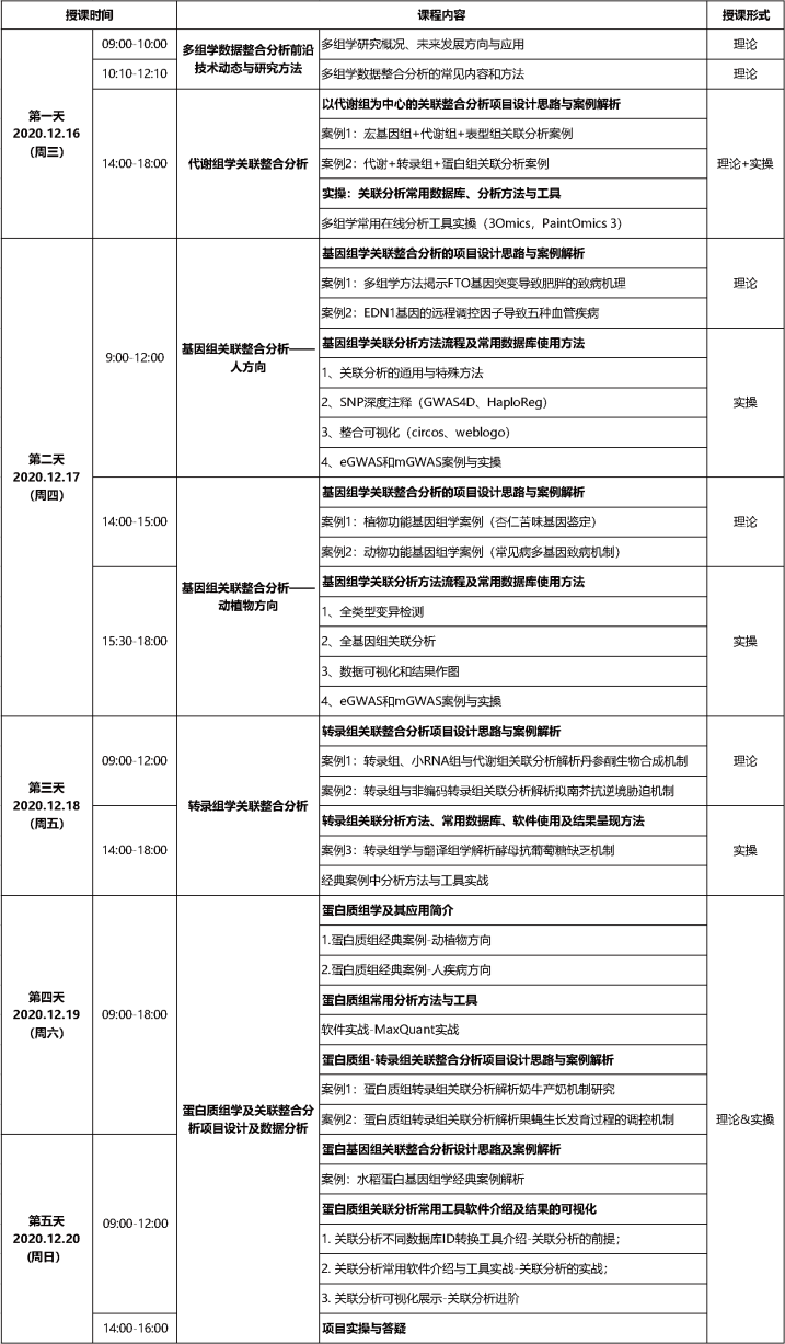 注:华大基因学院保留对以下课程信息进行调整的权利。
