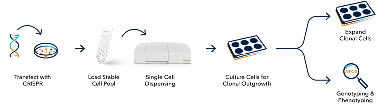 CRISPR技术能够精确修饰基因,给生命科学和生物医学带来了巨大的潜力。在CRISPR工作流程中,目标细胞被转染含有CRISPR编辑构建体和荧光报告基因的质粒,从而能够轻松识别成功转染的细胞。编辑后的细胞随后被分离进行单细胞克隆和克隆扩增。单细胞分离传统上采用手动有限稀释法以及荧光激活细胞分选仪(FACS),但这两种方法都存在固有的缺陷。