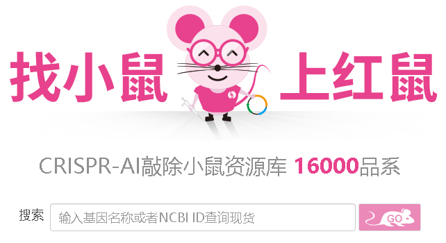 - 2. 点击这里进入“找小鼠 上红鼠”CRISPR-AI敲除小鼠资源库输入目的基因查询。