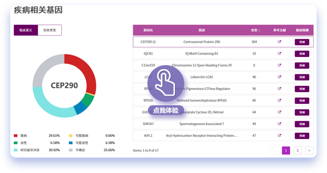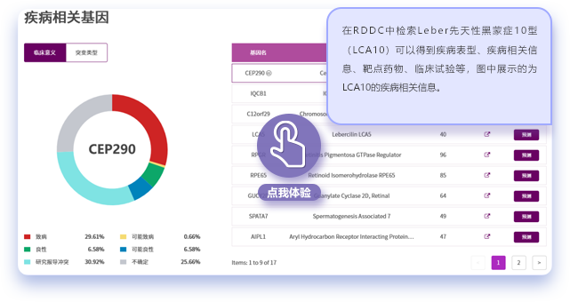 近年来,一系列眼部疾病的潜在遗传因素已被鉴定出来,相关动物模型的开发也让眼科疾病研究取得重大突破,越来越多的眼科基因疗法逐渐应用于临床。赛业生物基因治疗平台以眼科疾病为突破口,针对眼科表型检测设备昂贵、眼科基因治疗给药难度大、表型药效检测难度大、眼科遗传病小鼠模型制备周期长等问题,积极布局眼科基因治疗平台,拥有国际知名的精密小动物眼科仪器设备,由资深博士团带领,集合眼科精细化操作的技术人才协作,建立了标准化的眼科基因治疗研究整体服务体系。结合赛业生物AI领域的优势,通过罕见病数据中心(RDDC),我们能够查询针对眼科罕见病的流行病学数据、药物的发展概况、眼科疾病相关基因数据、眼科基因突变位点及大小鼠模型等数据,还能借助AI进行眼科疾病致病性预测。