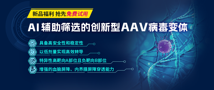 利用自主研发的AI技术和湿实验(wet lab)方法,我们能提供更为安全便捷、精准靶向目标部位的新型AAV病毒变体,其特异性和转导效率经多维度数据验证。为助力神经、眼科等疾病研究,现开放多类型AAV病毒变体的免费试用,期待更好地推动相关疾病研究及新药研发。欢迎拨打400-680-8038或邮件至info@cyagen.com联系我们。