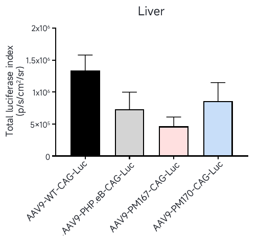 图5. 体内验证肝脏感染效率(活体成像-Luc)