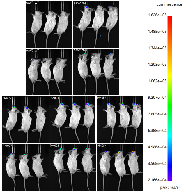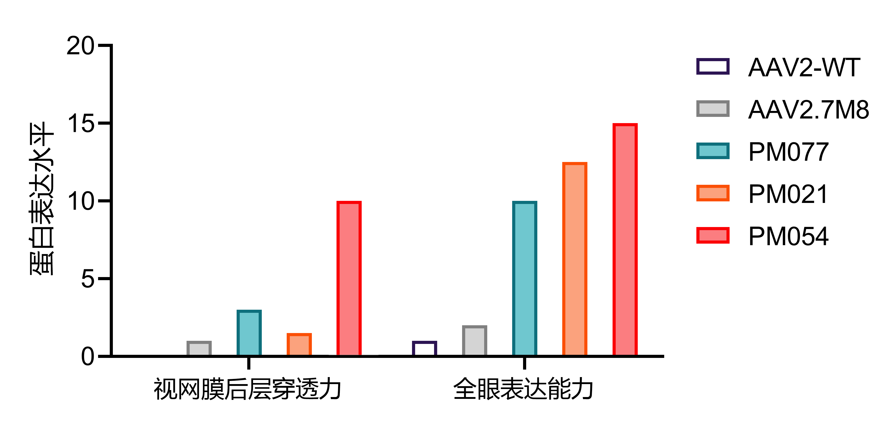 | 创新型AAV2病毒变体3 | PM054 | 10 | 15 | 5E10vg |