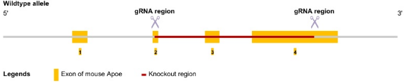 利用基因编辑技术敲除C57BL/6J小鼠Apoe基因的2~4号外显子区域。