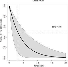 利用SLAM-seq分析Ythdf2敲除组和对照组的转录组半衰期。