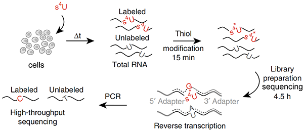 的一个“快照”,无法观察到RNA转录、加工和降解的细胞内动态过程。SLAM-seq,即thiol(sh)-linked alkylation for the