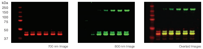 | 使用IRDye®标记的近红外荧光二抗均预先经过高交联吸附处理,具有极高的信噪比,交叉反应性已降到最低。 |