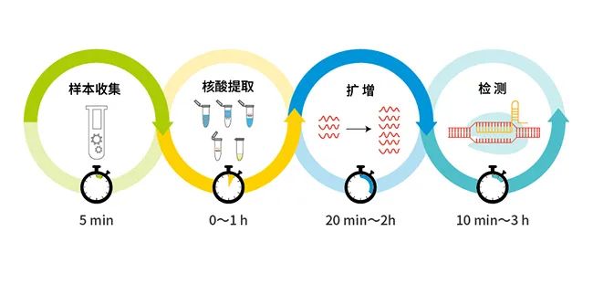 CRISPR-Cas系统广泛而成功的应用于基因编辑已有近20年,最近几年研究者发现其可用于分子诊断,可在不依赖于实验室和仪器的条件下,实现对多种病原体进行快速准确的检测。 CRISPR-Cas系统分子检测一般包括以下几个步骤: