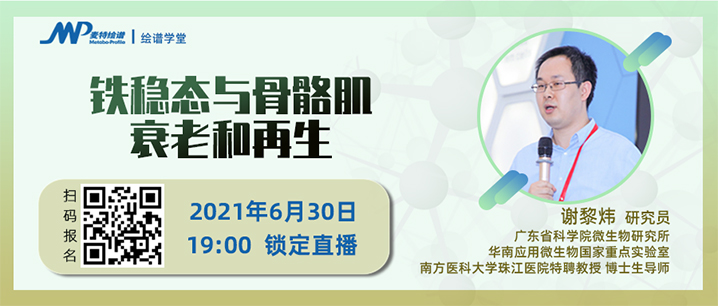 绘谱学堂2021第四期,麦特绘谱特别邀请近日在 Journal of Cachexia, Sarcopenia and Muscle 期刊上发表了文章Transferrin receptor 1 ablation in satellite cells impedes skeletal muscle regeneration through activation of ferroptosis的第一作者--谢黎炜研究员(广东省科学院微生物研究所,华南应用微生物国家重点实验室,南方医科大学珠江医院特聘教授,博士生导师)为您带来一场主题为《铁稳态与骨骼肌衰老和再生》的专题报告。本次课题研究,谢黎炜研究员团队首次报道了衰老骨骼肌Tfr1-Slc39a14功能转化可促进骨骼肌铁离子吸收、蓄积并诱发骨骼肌铁死亡的发生,可为骨骼肌衰老早期预防和干预提供新的靶点和干预方案。