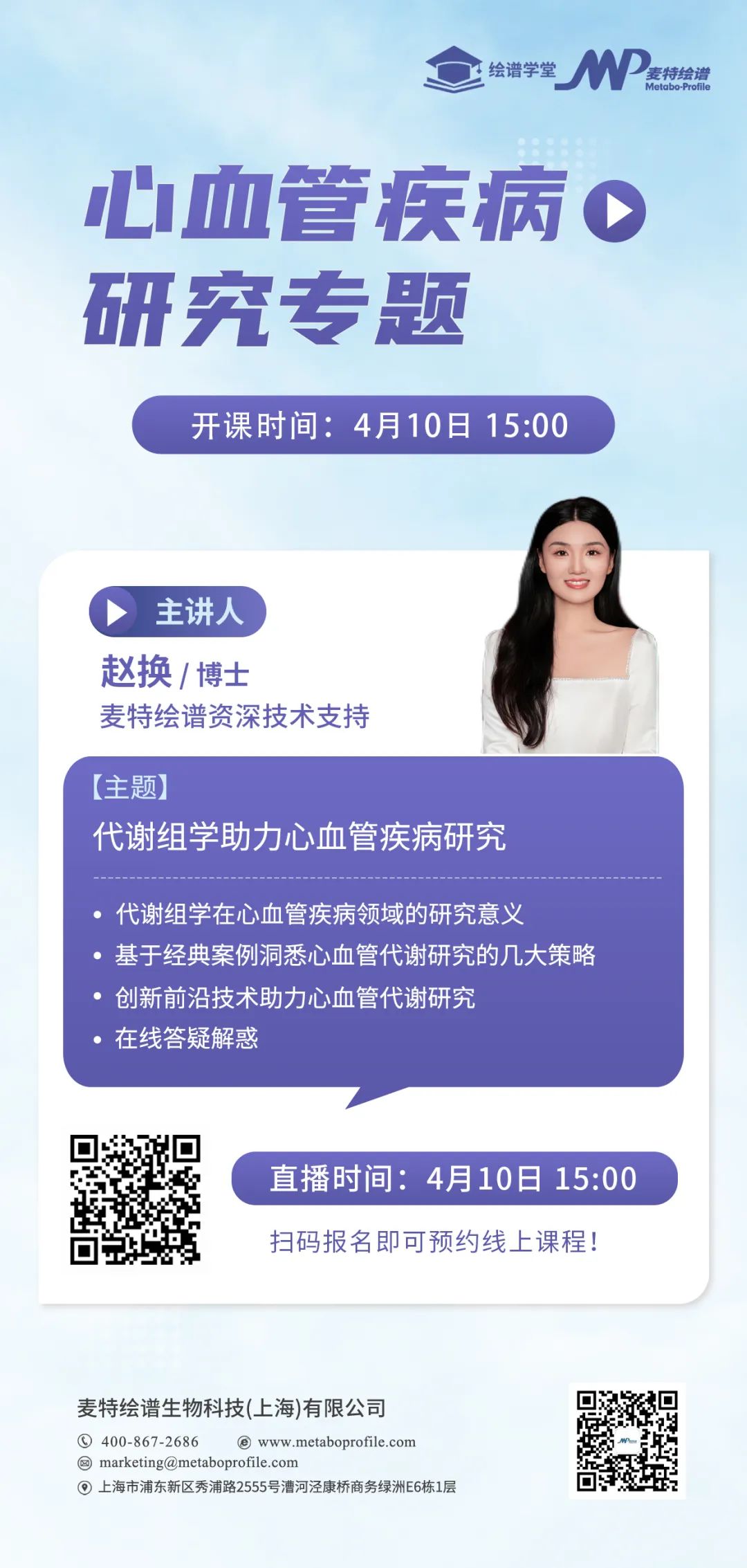 绘谱学堂 | 4月10日15:00开讲《代谢组学助力心血管疾病研究》