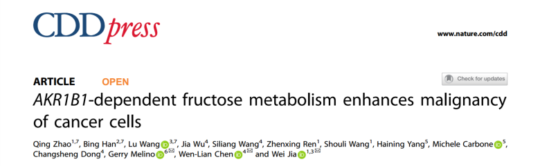 相关阅读:Cell Death Differ | 贾伟院士团队两篇背靠背好文--详解果糖代谢双路径在癌症中的关键作用