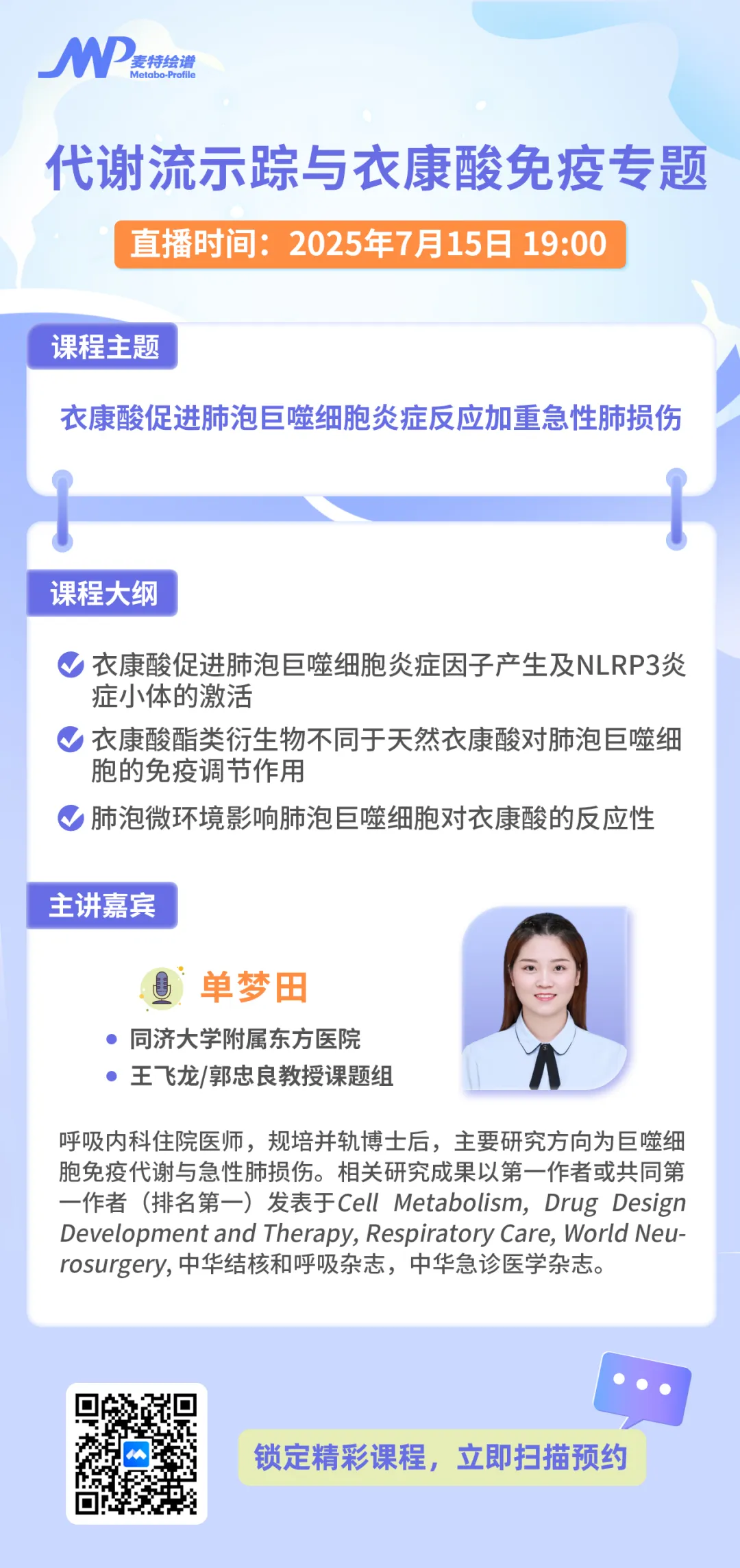 麦特绘谱生物科技(上海)有限公司(Metabo-Profile)汇聚了从事代谢组学和转化医学研究近二十年的海内外专家团队,专注于精准医学和健康领域的高端代谢组学技术服务,是一家集科技服务、健康检测及产品研发于一体的高新技术企业、上海市“专精特新”企业,已成为代谢组学研究者的优选合作伙伴。公司拥有自建1500+功能性小分子代谢物数据库JiaLibTM、国际的代谢组学分析技术平台和全自动化TMBQ定量数据处理软件、代谢组学数据在线分析平台iMAP。麦特绘谱已为数百家三甲医院、科研院所和企业提供多组学一站式整体解决方案,协助客户与合作伙伴发表SCI文章600+篇,累计影响因子6000+,包括Cell, Nature, Science, Cell Metabolism, Immunity, Gut, Hepatology, Microbiome等领域内权威期刊。