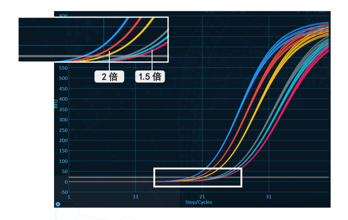 结果能清晰的区分2倍和1.5倍(置信区间99%)的质