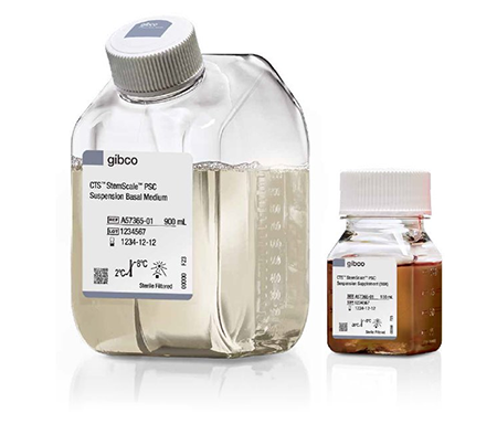 三维 (3D) 悬浮培养为细胞治疗应用所需的高质量 PSC 的大规模生产提供了一种有潜力的解决方案。2021年,赛默飞推出了基础研究可用的StemScale™ PSC 悬浮培养基(货号:A4965001)。随着PSC衍生的细胞治疗高速发展,行业亟需满足生产级别的多能干细胞 (PSC) 高效扩增方案,赛默飞重磅推出 Gibco™ CTS™ StemScale™ PSC 悬浮培养基(货号: A5869601),该培养基无异源成分并在cGMP标准下生产,通过促进PSC细胞自我聚集成 3D 球体,每次传代可实现细胞系相关的5-10倍扩增。此外,CTS StemScale还提供法规文件支持,包括原产地证明、质量分析证明以及DMF和RSF。