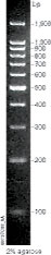 oC并可在琼脂糖电泳时直接上样。它非常适合于确定介于100-1,500碱基对之间的双链DNA的大小。该Ladder由11个双链DNA片段组成,大小分别为:100,200,300,400,500,600,700,800,900,1,000及1,500bp。500bp带的亮度是其它片段的3倍,可以作为参照指示。所有其它 |