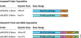ResponseTM 报告载体可供选择。pGL3(R2.1)-基本型及pGL3(R2.2)-基本型载体编码萤火虫荧光素酶并含有hlucP+及hlucCP+基因。同样,phRG(R