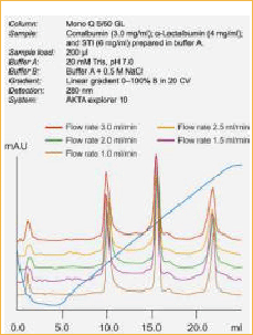 图1. Mono Q 的重复性非常好,在进样 2000 次后仍然保持应有的高分辨率和载量
