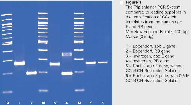 参考文献 [1] Liu, Q. and S.S. Sommer. 1998. Subcycling-PCR for multiplex long-distance amplification of regions with high and low GC content: application to the inversion hotspot in the factor VIII gene. Biotechniques. 25: 1022-1028. [2] Roux, K.H. 1995. Optimization and Troubleshooting in PCR. In: PCR Primer, A Laboratory Manual (Dieffenback, C.W. and G.S. Dveksler, editors), Cold Spring Harbor Laboratory Press, NY, pp. 53-62. [3] Schuchard, M., G. Sarkar, T. Ruesink, and T.C. Spelsberg. 1993. Two-step "hot” PCR amplification of GC-rich avian c-myc sequences. Biotechniques. 14: 390-394. [4] Sun, Y., G. Hegamyer, and N.H. Colburn. 1993. PCR-direct sequencing of a GC-rich region by inclusion of 10% DMSO: application to mouse c-jun. Biotechniques. 15: 372-374. [5] TripleMaster PCR System user manual. 2000. Version TM1000, Eppendorf. [6] Turner, S.L. and F.J. Jenkins. 1995. Use of deoxyinosine in PCR to improve amplification of GC-rich DNA..Biotechniques. 19: 48-52. 作者:Scott Tarpinian & Jennifer Halcome, Eppendorf – 5 Prime, Inc. Andres Jarrin, Eppendorf AG |