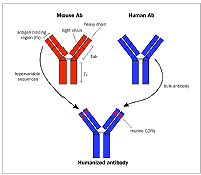 研究显示,两个变种与HuCC49相较血清应答明显较弱,V10比V5更弱。不同病人的血清样品,免疫应答的量级差异也很大,V10比HuCC49的免疫活性在10%,0.6%,和<0.3%。反应的顺序,是一致的(HuCC49>V5>V10)。作者还作了一个试验,将mCC49固定在传感芯片的一个通道,mCC92是第二个鼠单抗,类型相同,能识别另一个在TAG-72上的表位,固定在另一个通道。这样就可定性检测经mCC49给药的病人血清中的抗可变区域的抗体种类,而无需先对血清做免疫吸附。因为TAG-72或鼠抗Fc抗体的结合SPR 反应可以用mCC49和mCC92的结合反应值来近似。