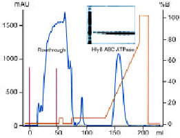 | 图3. 一步纯化ATP结合盒[ATP Binding Cassette (ABC)]。ATP酶N-端有多聚组氨酸。柱:XK