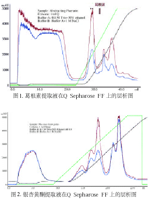 凝胶精纯了银杏黄酮和葛根素,效果事半功倍。我们发现此方法适合不少其它中草药中黄酮类物质的精纯,具有广泛的实际应用意义。