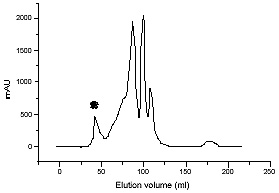 MDa)。柱子用含0.1% Berol 185 的破碎液来平衡。因为它的排阻极限很大,可以让其它蛋白,核酸及其它细胞器等渗入凝胶内部,而只将包涵体蛋白质排阻在外。这样只收集在空体积V0