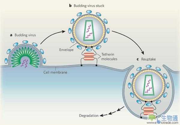 生物通报道,2008年逆转录病毒研究权威专家Paul D. Bieniasz发现了一种阻止艾滋病病毒HIV从细胞内释放的蛋白:Tetherin,经过1年的时间,Paul首次解开了Tetherin阻止HIV从细胞中释放的相关机制,成果文章Tetherin Inhibits HIV-1 Release by Directly Tethering Virions to Cells发表在最新一期的Cell杂志上,并被列为研究亮点,同期Emory大学的教授刊发评论文章Tetherin Is as Tetherin Does。