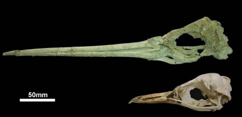 3400万年前的伊卡企鹅头骨化石与现代的秘鲁企鹅头骨对比图(Daniel Ksepka拍摄)