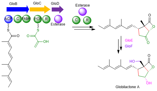 文章题目:Discovery and biosynthetic pathway analysis of cyclopentane–β-lactone globilactone A
