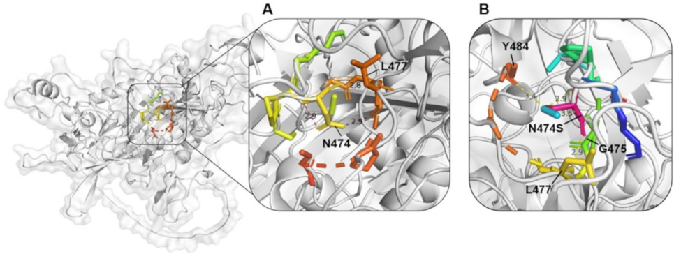通过AlphaFold3预测发现,VP1蛋白N474S突变改变了氢键网络:
