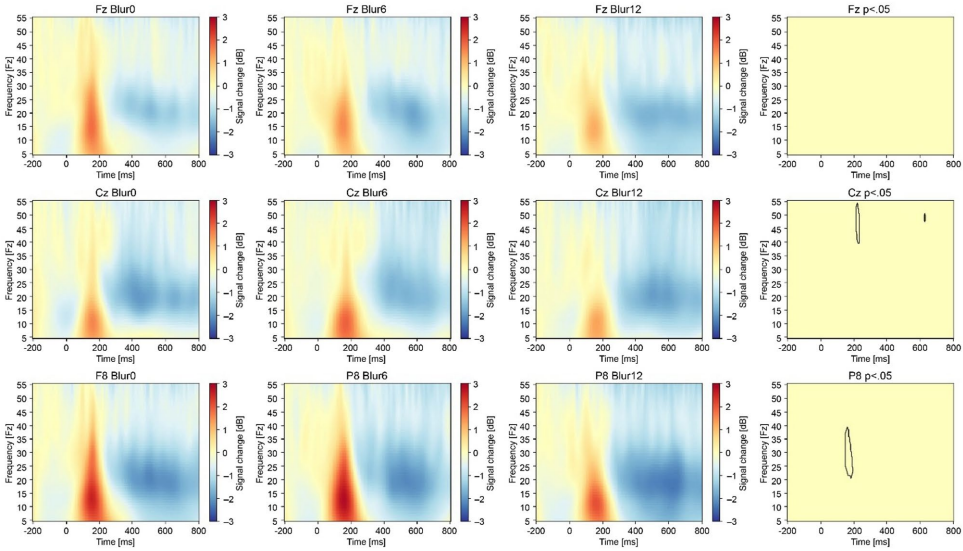 东京大学与庆应义塾大学联合团队在《Scientific Reports》发表研究,通过创新性实验设计破解这一难题。研究人员采用芝加哥面部数据库(Chicago Face Database)中多族裔样本,构建两类实验刺激:高斯模糊(0/6/12像素)制造知觉模糊,男性-女性面部渐变(0%-100%)制造性别模糊。34名参与者完成性别二态性判断任务,同步采集128导脑电数据,结合ERP和时间频率分析技术。关键技术包括:九脑区划分的ERP成分提取(N170、EPN、LPP等)、Morlet小波变换的时频分析,以及基于probit模型的行为数据分析。