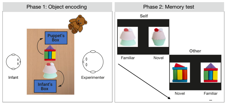 本研究针对人类认知中经典的自我参照效应(self-reference effect, SRE)的发育起源问题,通过创新性实验设计揭示了18月龄婴儿记忆偏好的关键转折。研究人员采用所有权操纵范式(self-owned vs. other-owned objects)结合镜像自我识别测试(mirror self-recognition),首次发现自我概念形成前婴儿存在显著的他者参照效应(other-reference effect),而该效应随镜像自我识别能力的获得转变为典型SRE。这一发现发表于《Nature Communications》,为理解社会认知发展提供了全新视角,表明早期记忆系统可能优先编码他者相关信息以适应依赖期生存需求。