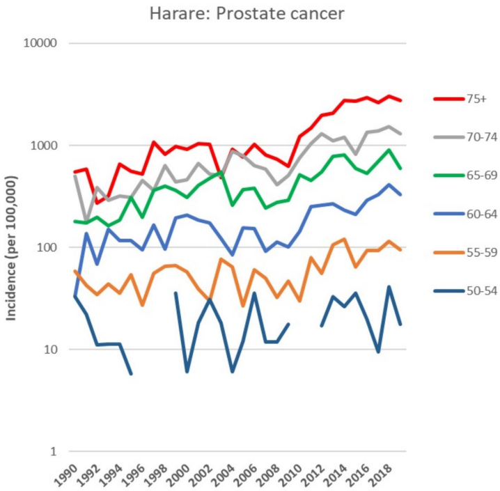 为解答这些问题,津巴布韦国家癌症登记处(Zimbabwe National Cancer Registry)联合牛津大学纳菲尔德人口健康系(Nuffield Department of Population Health, University of Oxford)的研究团队,系统分析了1990-2019年间哈拉雷地区黑人男性生殖系统肿瘤及膀胱癌的发病趋势。这项开创性研究发表在《Cancer Causes 》期刊,首次完整描绘了撒哈拉以南非洲地区这些癌症的长期演变轨迹。