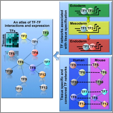 在完成的图谱中,有762种人类的转录因子和877种小鼠的转录因子,它们可相互作用。分析研究发现,大部分的转录因子可在各种组织中表达并且相互发生作用,有近50%的转录因子功能保守(人与鼠的转录因子功能类似)。