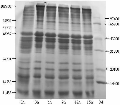 根据Wasson等的方法稍作改进提取总蛋白。取40ml含有0.1%β-巯基乙醇的5%SDS溶液添加到6g搅碎的鱼肉中,然后用绞肉机绞碎3次,每次10s,然后无损转移到离心杯中(期间用另外10ml上述SDS溶液淋洗绞肉杯);再于80℃水浴1h ,尽量使所有的肌原纤维蛋白完全溶解,最后在8000r/min离心20min,上清液过滤去除脂类等物质,并用Lowry法测定上清液中蛋白质的含量。