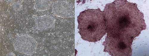我们成功的将5种转录因子的基因和SV40 Large T抗原转入脐血CD34+细胞,成功的诱导其重编程,成为hiPSCs。在这里我们用了Lonza的Nucleofector成功高效的将外源性的质粒导入细胞,Lonza诱导成的hiPSCs具有与hESC相似的特征,包括自我更新能力,hESC相关的表面标志物的表达,碱性磷酸酶活性阳性,以及关键的几种多潜能标志物的表达。这些细胞维持了正常的核型并能有效的分化成细胞的三胚层。在细胞内检测不到外源性的DNA片段的残留,由此证明了通过一种“zero foot print”方式诱导体细胞重编程成功。