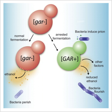 研究显示,细菌分泌的化学因子能够诱导[GAR+],[GAR+]是一个基于蛋白的表观遗传学元件,就是它帮助酵母绕过葡萄糖阻遏转而使用多种碳源。[GAR+]对细菌有利是因为它能使酵母细胞产出的酒精减少,对酵母有利是因为复杂碳源有助于酵母的生长。
