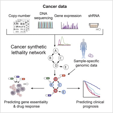 Tel Aviv大学的研究人员开发了一个鉴定合成致死相互作用的新算法。他们通过分析癌症临床样本的遗传学和分子数据(拷贝数、DNA测序、基因表达、shRNA等),全面鉴定了癌细胞中的合成致死基因,生成了癌症合成致死的核心网络。研究显示,这样的网络能够预测基因的重要性、细胞对药物应答以及患者的预后情况。