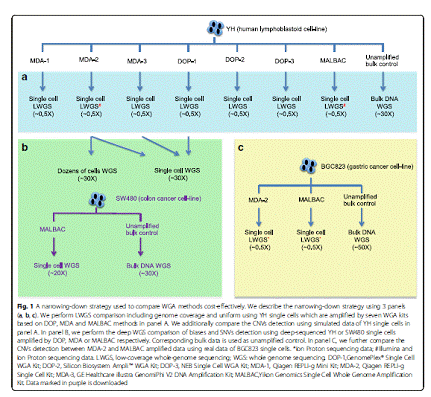 作者总结道,对于那些需要低重复率和高基因组覆盖度的研究,如疾病研究中的SNV检测, MDA和MALBAC策略比较合适。此外,如果同时开展SNV和CNV检测,他们建议使用MDA-2和/或MALBAC,因为它们在变异检测上的效率和准确性更高。