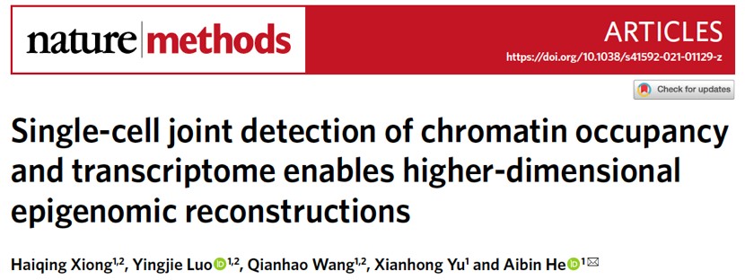 2021年5月6日,生命科学联合中心、北京大学分子医学研究所研究员何爱彬研究组在《Nature Methods》杂志在线发表题为“Single-cell joint detection of chromatin occupancy and transcriptome enables higher-dimensional epigenomic reconstructions”的研究论文,报道了一种新型高通量和高质量的名为CoTECH (combined assay of transcriptome and enriched chromatin binding)的单细胞双组学技术,这个方法能够同时在单个细胞中捕获蛋白质-染色质互作和基因表达信息,并重构单细胞多维表观景图。