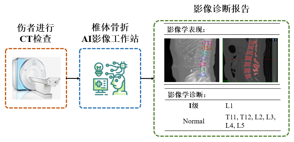 中国每年有超过110万司法鉴定案件涉及法医临床鉴定,人体脊柱骨折鉴定是法医临床鉴定中出现频率最高的项目之一。在脊柱骨折鉴定过程中,法医需要凭经验分析伤者的影像学资料并根据骨折严重程度(轻度骨折为I级、中度骨折为II级、重度骨折为III级)为每一块椎体进行骨折分级诊断。由于脊柱骨性结构复杂且椎骨为不规则骨,容易造成遗漏诊断或争议诊断。同时,由于法医从业人员水平层次不齐等原因,不同鉴定机构之间鉴定意见不一致的事件常有发生,因此脊柱骨折鉴定案件往往需要通过二次以上的鉴定才能定夺,既增加了当事人的负担,又浪费司法资源。许多案件因为不公正的鉴定结果,造成法院工作的被动,严重影响法律的权威。因此,脊柱骨折精准诊断是法医临床鉴定中亟待解决的难题。