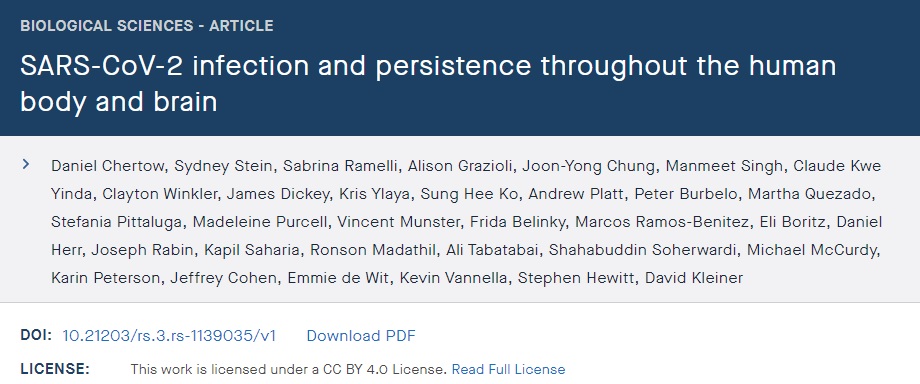 美国NIH:SARS-CoV-2能持续感染全身多个器官甚至大脑!