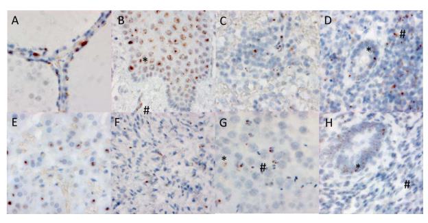 病毒sgRNA合成SARS-CoV-2开始所需的各种蛋白质(刺突蛋白、囊膜蛋白等)。运用检测位于完整细胞中目标RNA的原位杂交(ISH)检测技术RNAscope,放大特异性信号而非噪音信号,从而原位定位定量RNA丰度。研究人员观察到在尸检不同器官细胞类型中(食管、甲状腺、卵巢、睾丸等),SARS-CoV-2病毒的刺突RNA在外观上定位于高尔基体和内质以及核周围(下图500倍放大)。结合qRT-PCR数据,表明SARS-CoV-2在某些个体感染后可在组织内复制3个月以上,RNA在长达230天的时间内无法从多个隔室中清除。