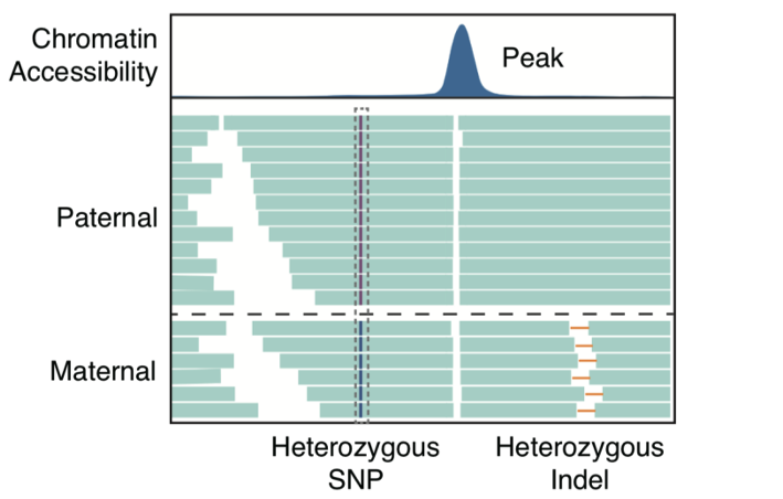 图3. 用scNanoATAC-seq技术鉴定等位基因特异性的染色质开放区域的原理图
