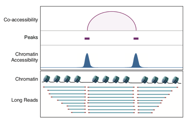 图6. 利用scNanoATAC-seq鉴定相邻的调控元件共开放事件的原理