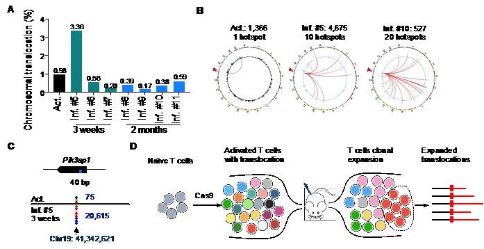 图二. PEM-seq检测炎症T细胞中染色体易位的比例和高频位点